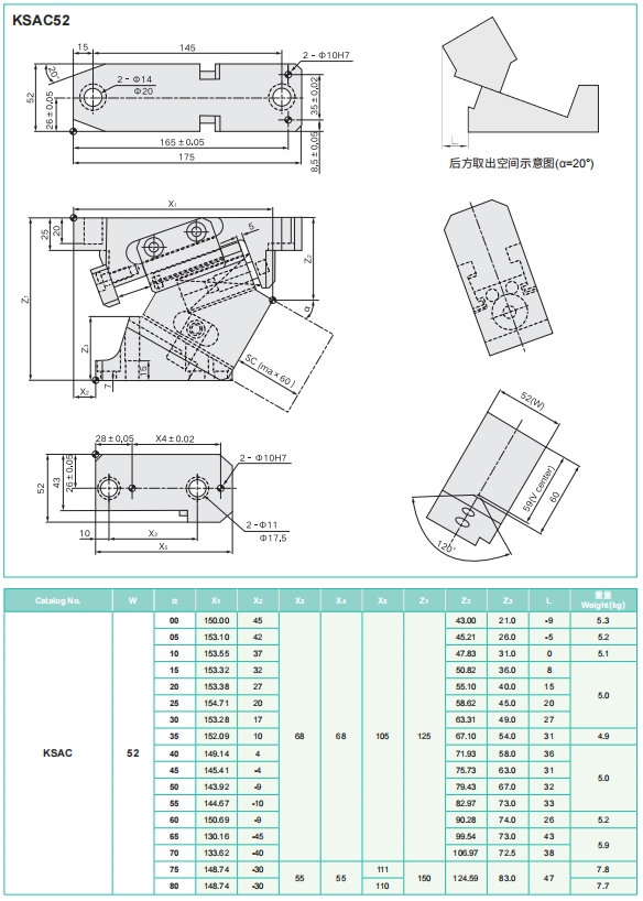 滑塊安裝面52mm,高度125mm。