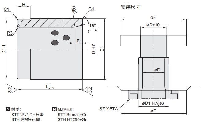 JIS系列一直筒式銅合金(灰鐵)自潤滑導套